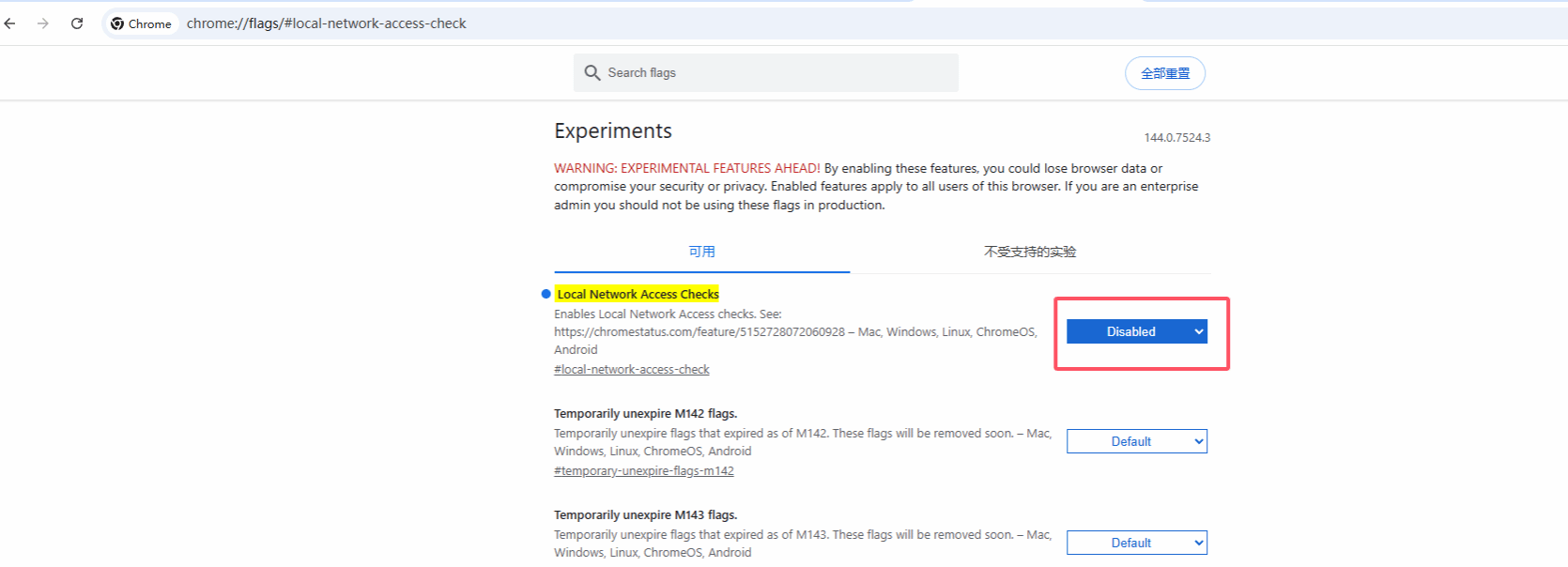 1.在地址栏输入:chrome://flags/#local-network-access-check